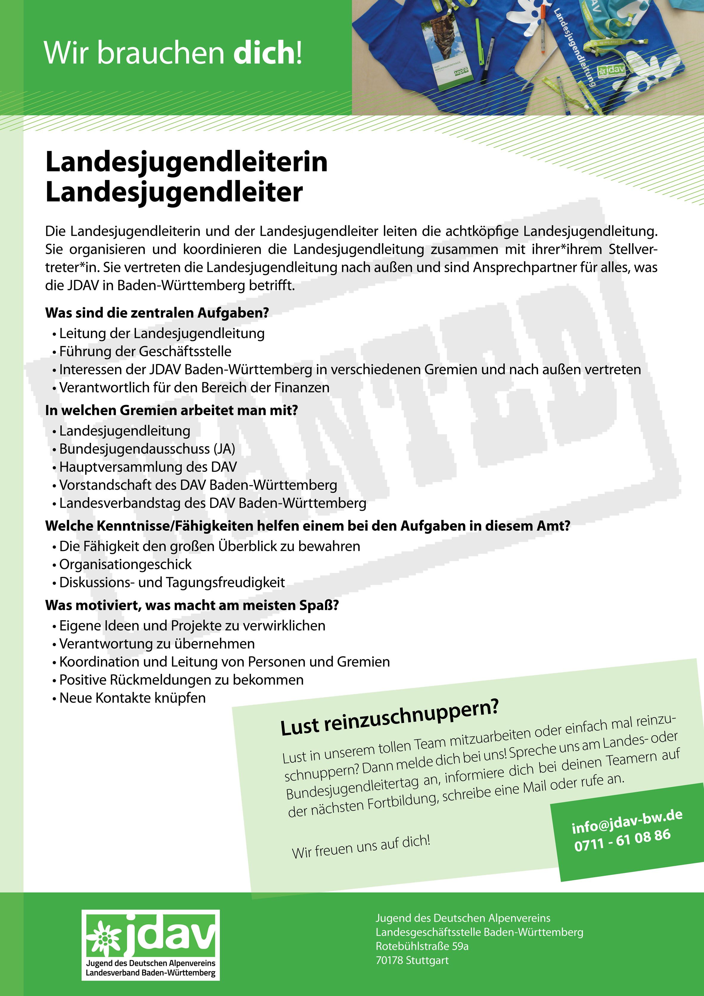 - evtl. stellvertretende*r Landesjugendleiter*in (siehe Hinweis)